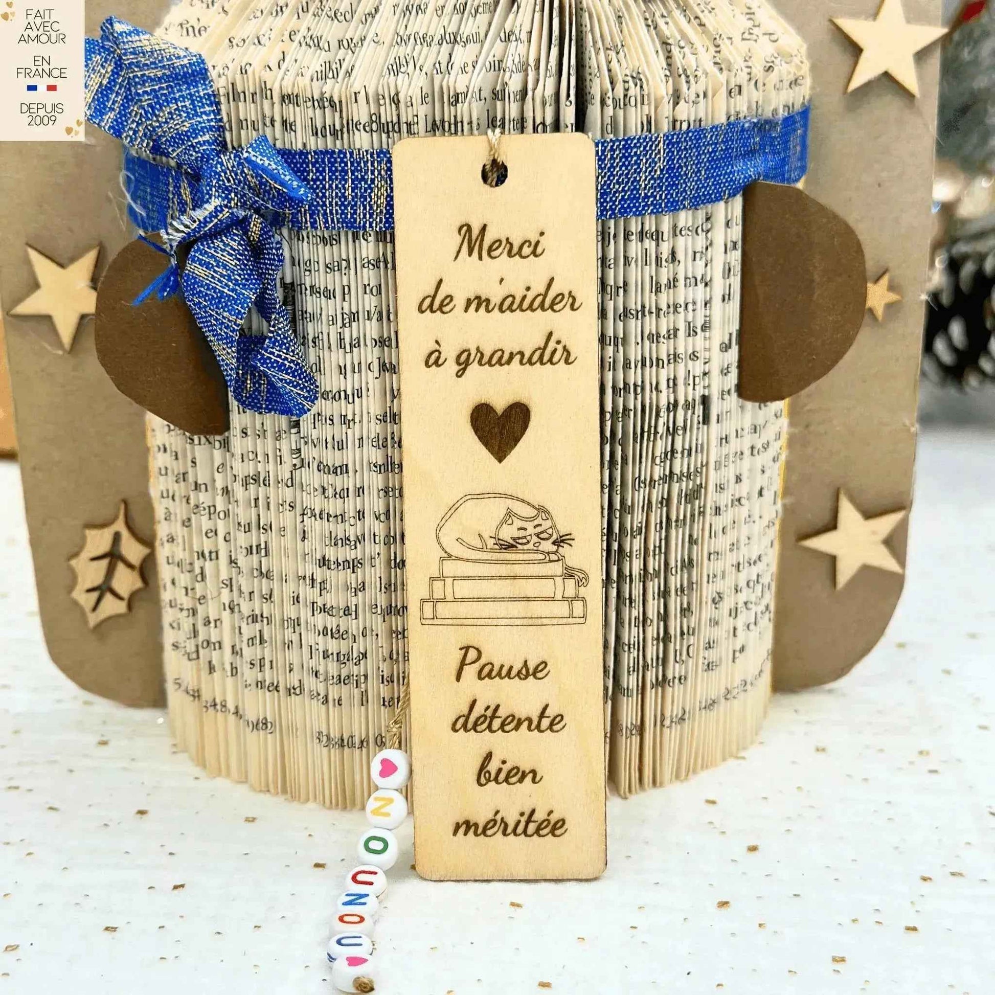 Marque-page personnalisé, marque-page bois, cadeau bibliophile, accessoire de lecture, marque-page en bois gravé, cadeau fait main, perles personnalisées, cadeau original France, cadeau personnalisé, gravure sur bois, bijou de lecture, idée cadeau lecture, marque-page artisanal, cadeau anniversaire, cadeau Noël, cadeau personnalisé France, marque-page bois perle, accessoire de lecture personnalisé, cadeau artisanat Vosges.