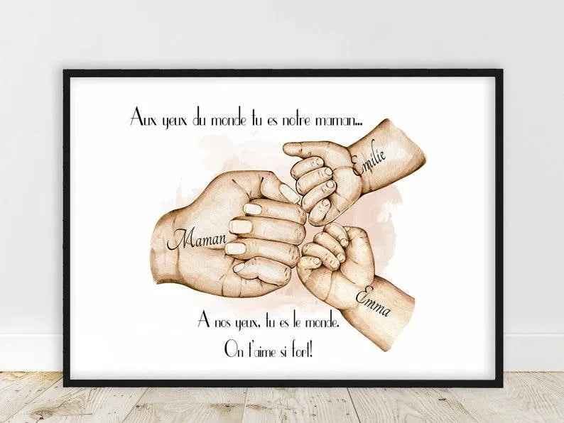 Affiche personnalisée, affiche a3, cadre en option, cadeau marraine, art mural, decoration murale