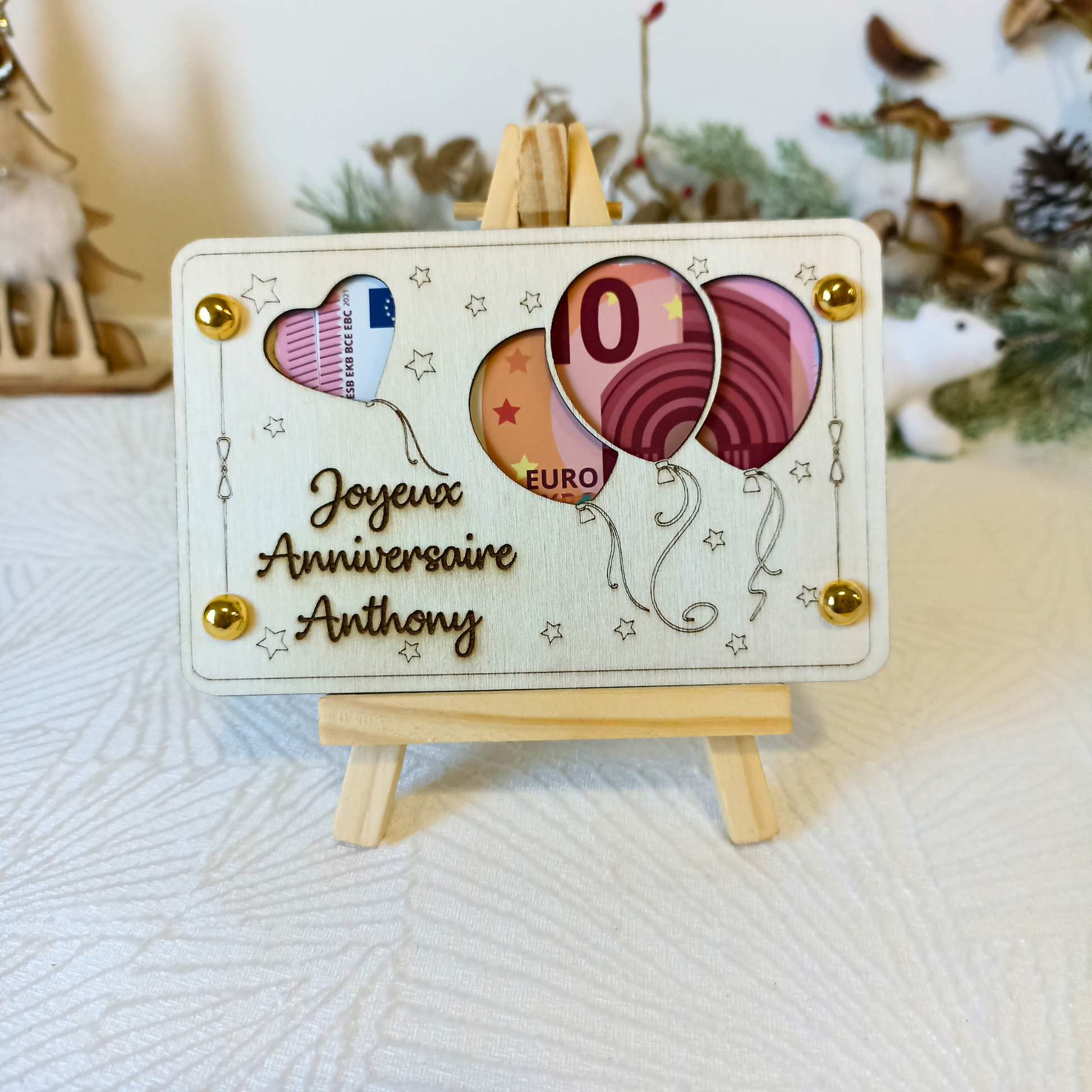 Carte cadeau mariage en bois – Emballage billet original – Gravure laser personnalisée – Idée cadeau pour mariés