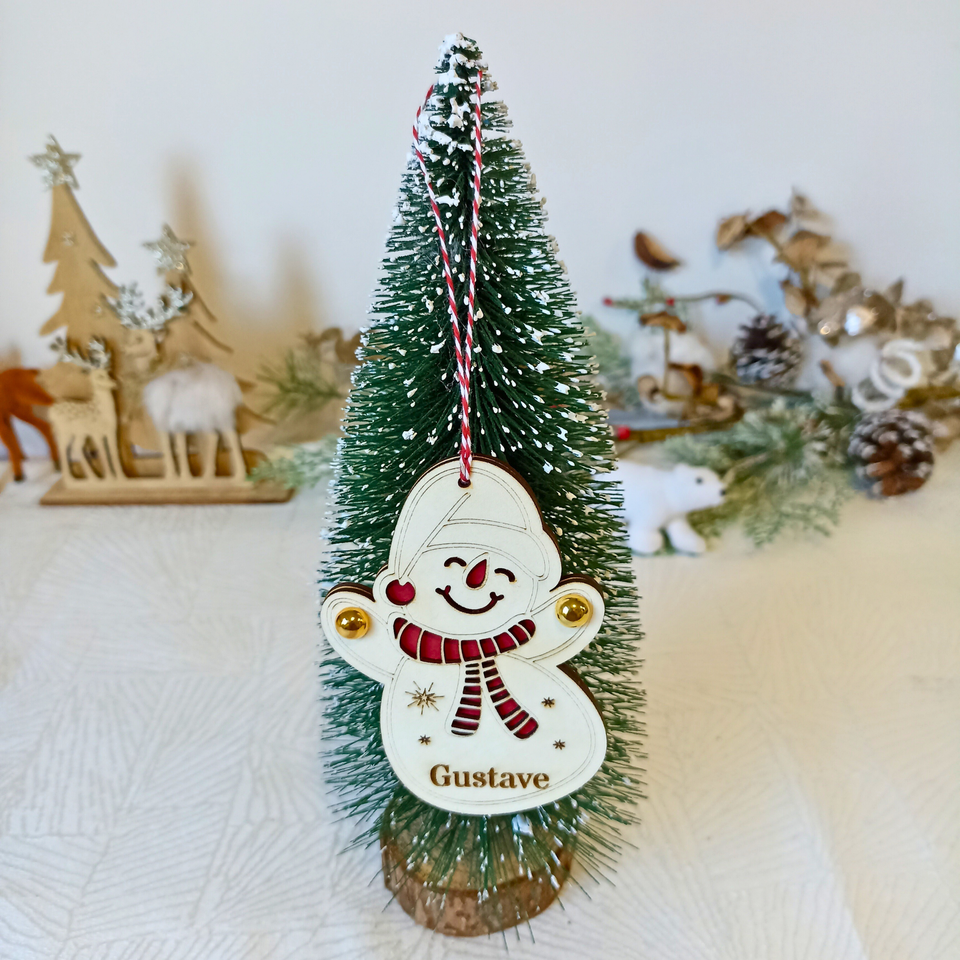 Gnome de Noël en bois gravé – Décoration sapin personnalisable