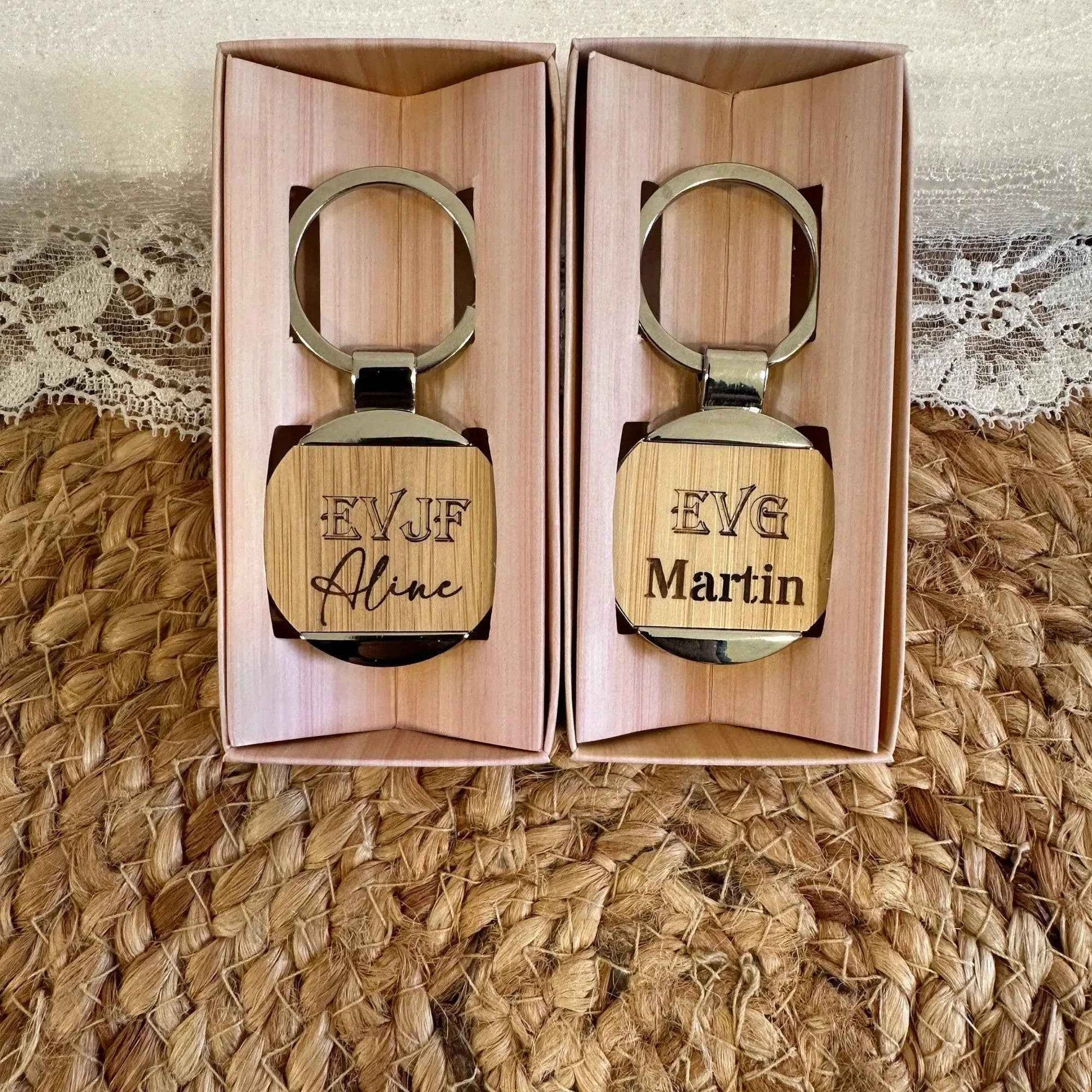 Porte-clés Personnalisés en Bois - Fabriqué en France - Evjf, Evg, Mariage - Cadeau témoin - Cadeaux Personnalisés Invités - Gravure - Clefs